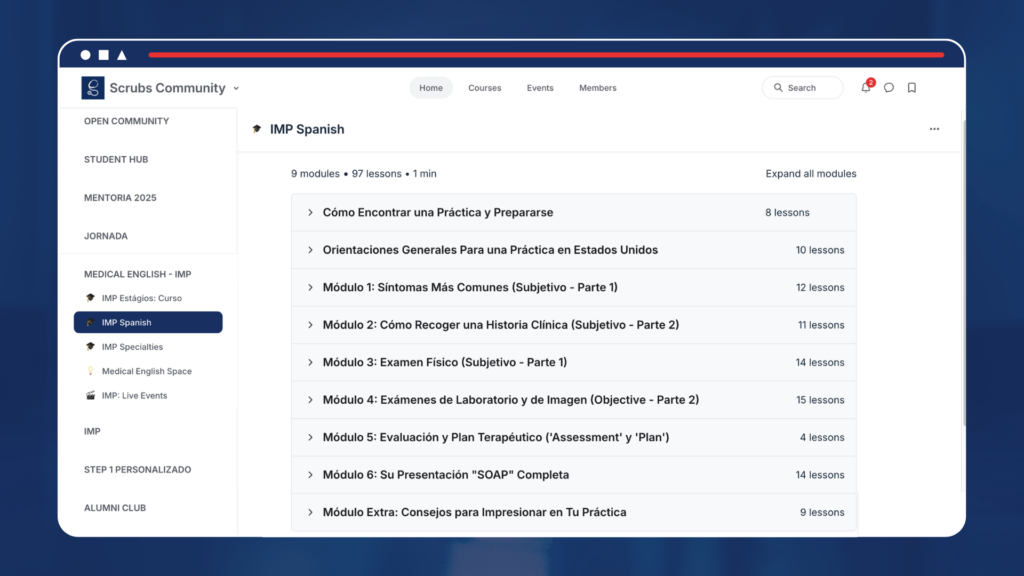 Empieza viendo el Módulo 0, donde aprenderás cómo encontrar una rotación y cómo prepararte, además de recibir una guía general sobre todo el proceso.